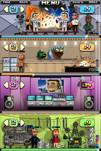 Pixely People Making Movies es un juego de gestión cinematográfica en pixel art, al menos en versión compacta, y es que aunque la finalidad sea la de crear la mejor película, a la hora de jugar solo tendremos que ir recolocando a nuestros trabajadores en 4 plantas diferentes, encargadas de cada uno de los procesos de la película.